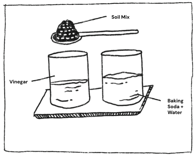 You will need your soil mix, vinegar, baking soda, water and 2 small containers