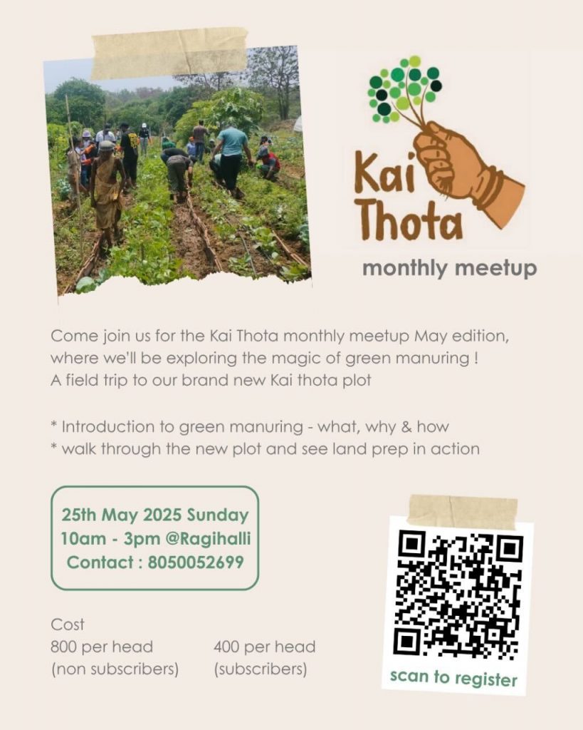 We’ve worked with the Ramanayakana Doddi community earlier—documenting their cultural practices and making jewellery with naturally dyed silk cocoons. Green manuring is just the beginning of our longer journey with them.Do spread the word about this meetup—it would be great to have more Bangaloreans understand the ESZ and the people who live in it. 😀